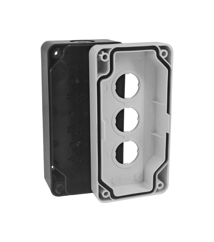10919 - CAIXA PLÁSTICA BEGE/PRETO BX1PQ-3 COM 3 FUROS 22MM - DIMENSÕES: 135X68X51MM (CXLXH)