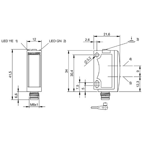 SENS OPT DIF BOS01LE 12 X 22 X 41 PNP REV 120 CON M8