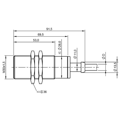 SENS IND M30 X 92 PNP REV 10 LT FC CB SIL 5M 0,3K