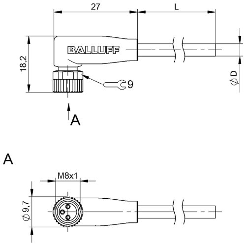 296241 - CABO + CONEXÃO ANG FÊMEA M8 5M 3 POLOS PU BCC02MM
