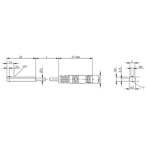 297008 - SENS MAG 5 X 4,4 X 29 PNP NA RANH T PL CB 0,2M CON M8 BMF0070