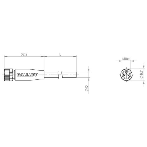 299028 - CABO + CONEXÃO RETO FÊMEA M8 2M 3 POLOS PVC BCC02NU