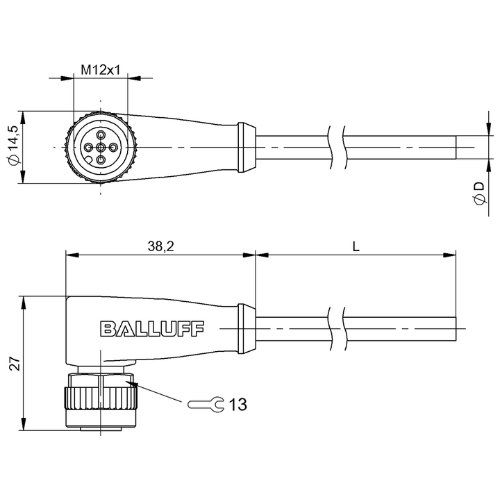CABO + CONEXÃO ANG FÊMEA M12 10M 4 POLOS PVC BCC036R