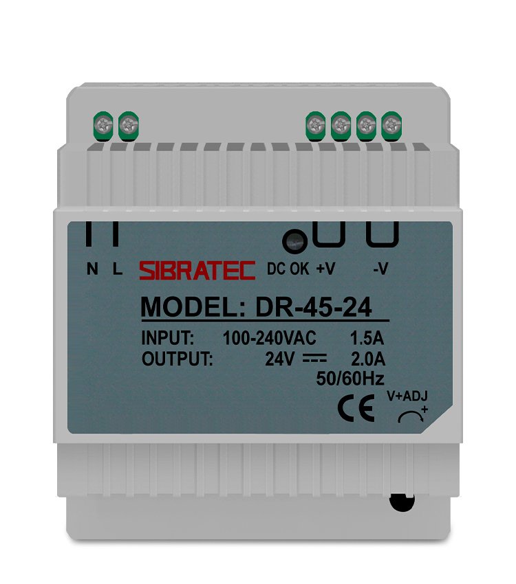 FONTE CHAVEADA PARA TRILHO DIN - ENTRADA 110/220VCA E SAÍDA 24VCC DE 45W 2A - DR-45-24V